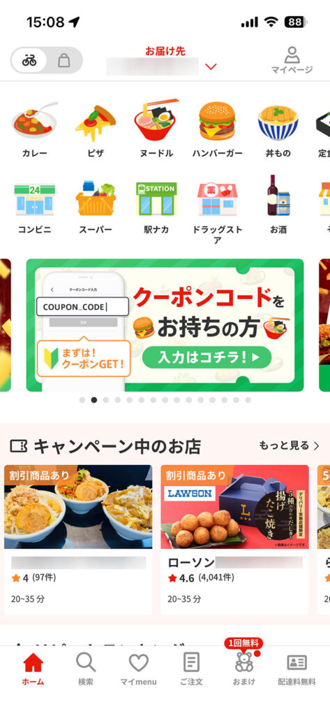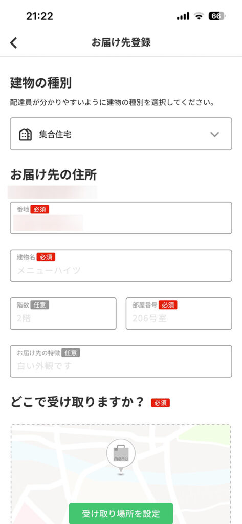 アプリの登録自体は数分で終わりますが、住所を雑に入力すると注文した商品の配達が成立しません。
