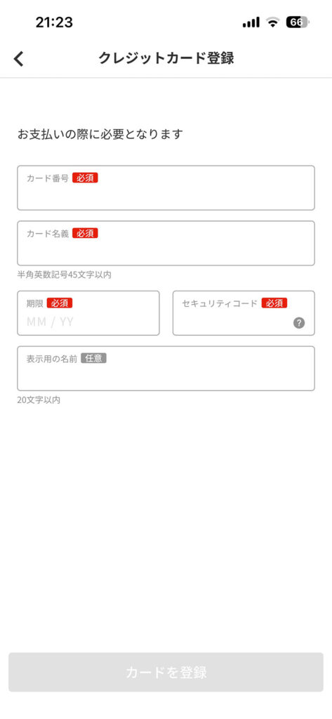 iPhoneやauユーザー以外の方はクレジットカード情報を登録する必要があります。